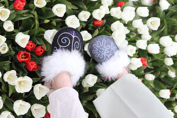 Our Felt/Wool Slippers with Fur are crafted from 100% natural wool felt, enhanced with a soft fur lining for added warmth and coziness. Designed for both indoor relaxation and light outdoor use, they feature a breathable feel and a sturdy sole with extra grip. Available in multiple colors, these slippers offer luxurious, eco-friendly comfort with animal-friendly fur or pom-poms. The Sinem Tribal Slippers combine sustainability, style, and warmth for your feet.
